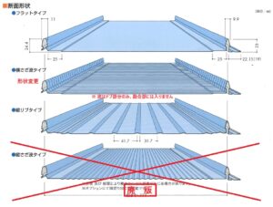 瓦棒葺屋根で標準的な働き幅418㎜を中心に、330㎜から460㎜まで働き幅が可変で、さまざまな働き幅の心木なし瓦棒葺屋根や立平葺屋根の改修に対応可能です。