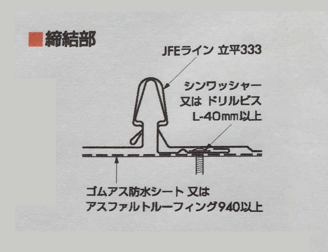 ●締結部のヘッドに防水テープ、下地上にゴムアス防水シートをセットする完全防水屋根加工も可能です。