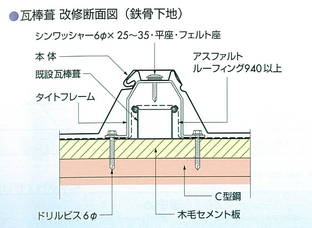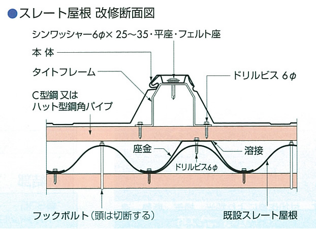 ●元の屋根はそのままで、内部の移動や養生の必要もなくスムーズに改修工事が行なえます。